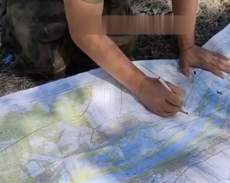 Ein am Sonntag veröffentlichtes Video von ukrainischen Militär-Bloggern zeigt den russischen Major über eine Karte seines eigenen Einsatzgebiets gebeugt. Unter der Anweisung seiner ukrainischen Aufseher markiert er die Positionen der russischen Truppen auf der Karte mit einem Stift. Die Karte deckt genau das Gebiet ab, in dem der Major am Dienstag gefangen genommen wurde: das Südufer des Flusses Dnipro und den Ort Kosatschi Laheri.
